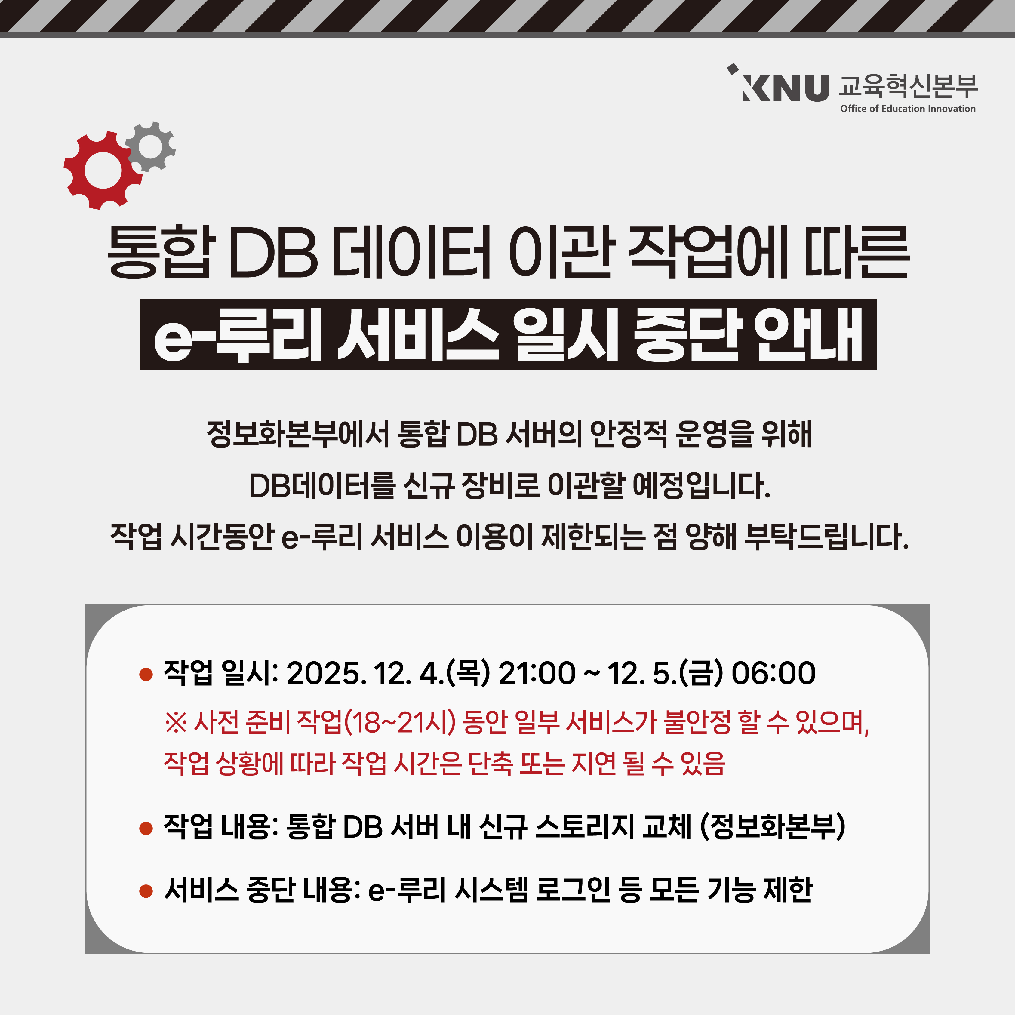 통합 DB 데이터 이관 작업에 따른 e-루리 서비스 일시 중단 안내