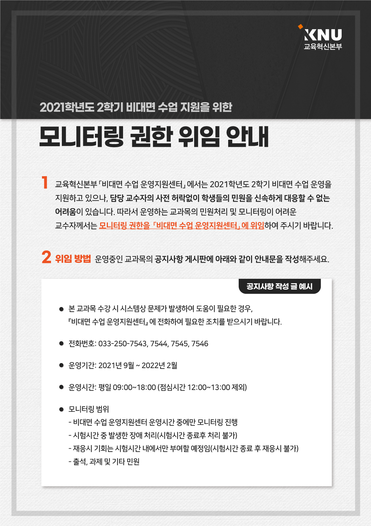 모니터링 권한을 「비대면 수업 운영지원센터」에 위임 요청