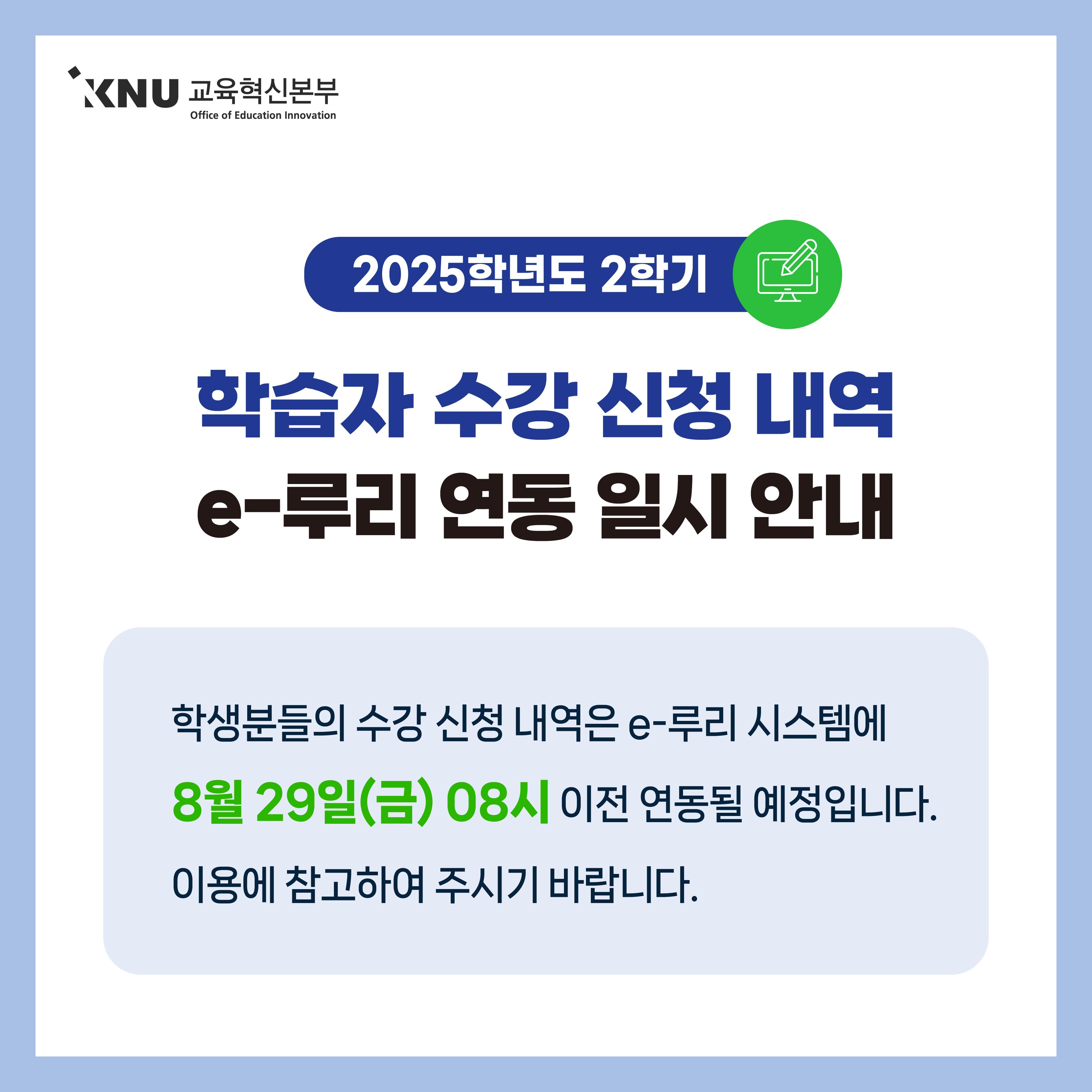 2025-2학기 수강신청 내역 e-루리 연동 일시 안내