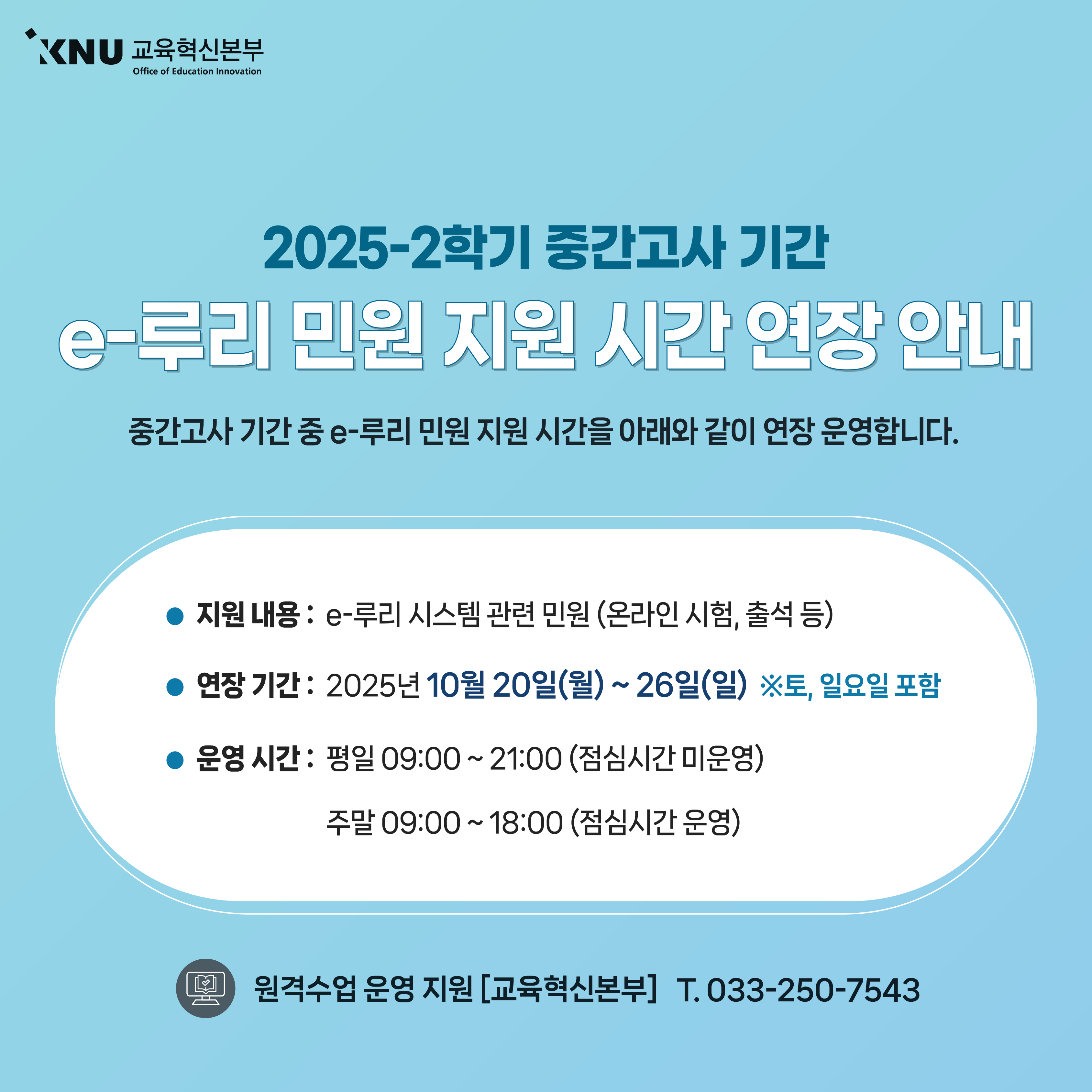 2025-2학기 중간고사 기간 중 e-루리 민원 지원 시간 연장 안내